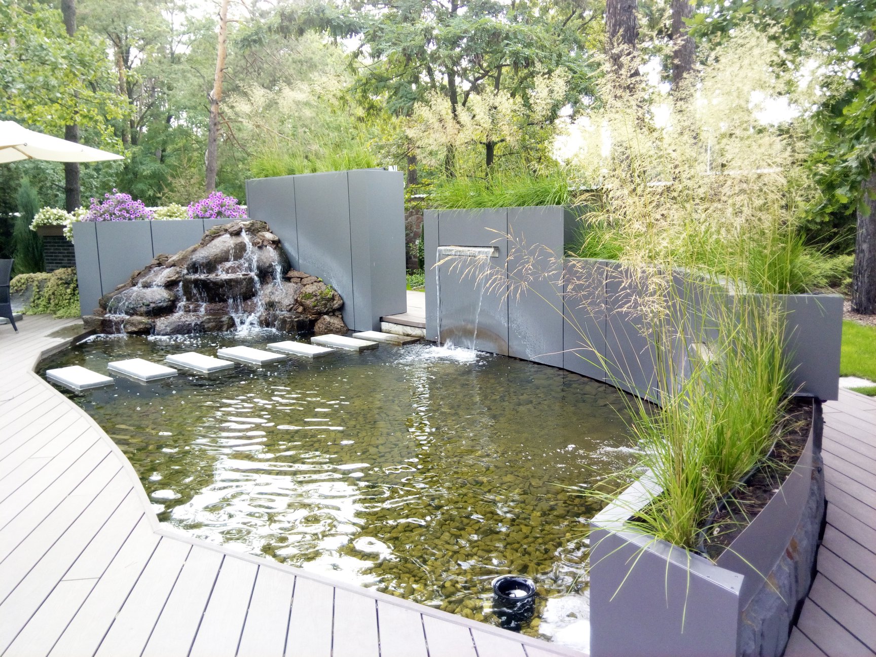 МС Ландшафт занимается устройством водяных участков. Мы осуществляем полный комплекс мероприятий, касающихся этого направления деятельности. Проектирование, подбор необходимых материалов и конструкций, создание бассейнов и водовместилищ, оснащение водой и другими услугами для оформления идеального декора для дачи, частного коттеджа или любой области вокруг водной поверхности. Наше агентство предоставляет сервисы обустройства по выгодной стоимости, на которую влияет география локации, стройматериалы, тип строительных мероприятий и их количество.